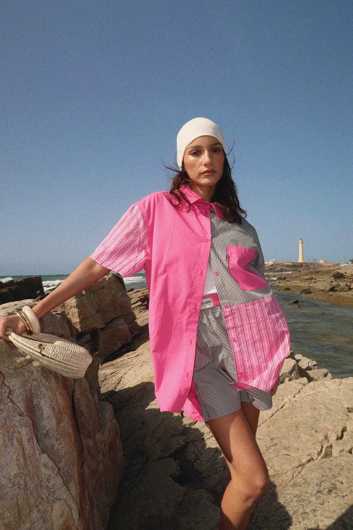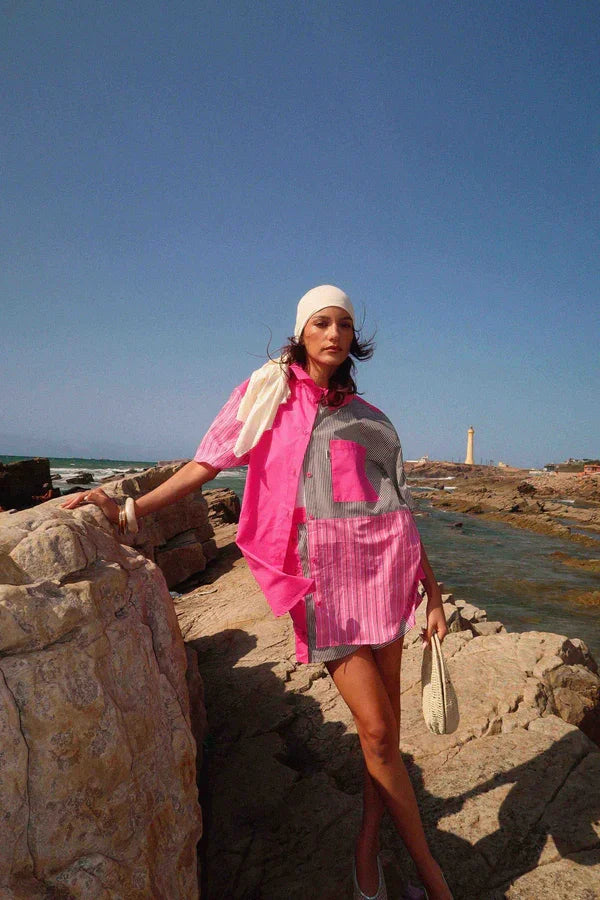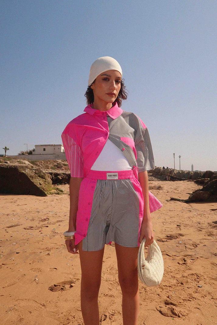 Inspirée d’une coupe d’homme, elle revisite l’oversize avec audace grâce à un patchwork de rayures upcyclées. Un essentiel moderne, confortable, et unique.