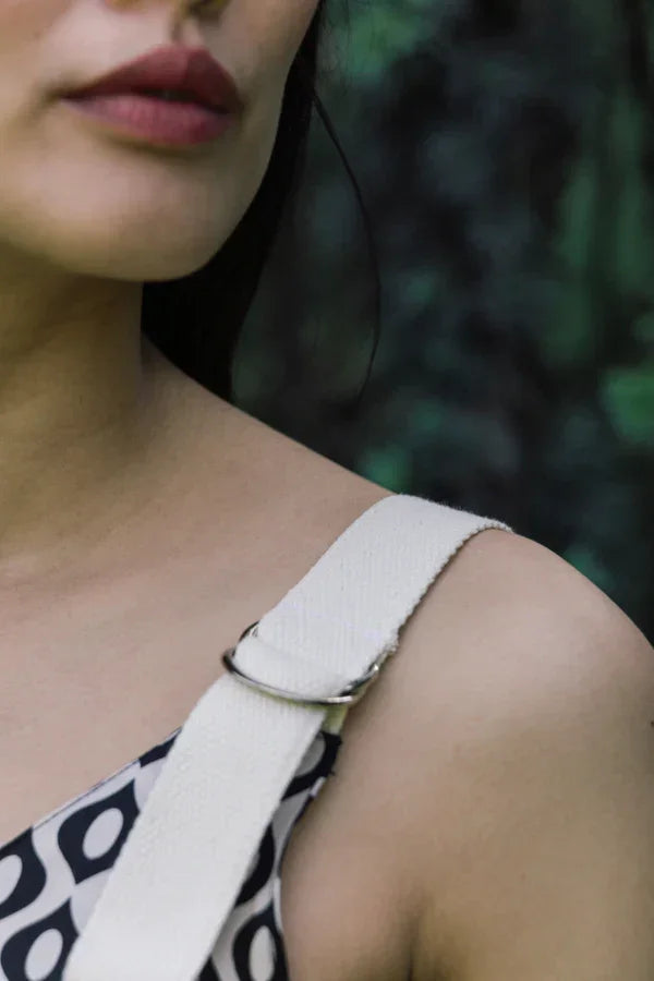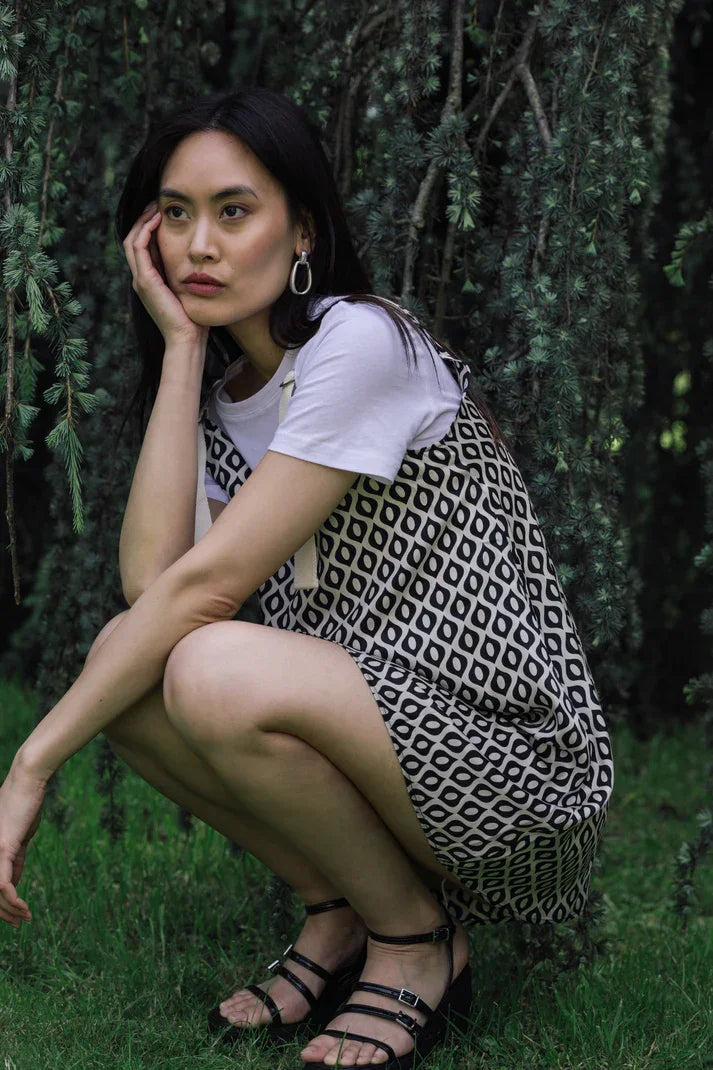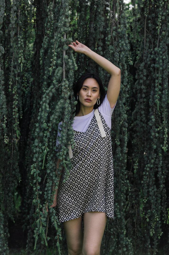 Le tissu utilisé pour cette robe provient de fins de rouleaux que nous avons pu trouver sur place, grâce à la proximité de nombreuses usines dans la région. Cette approche nous a permis de réduire notre empreinte environnementale en donnant une seconde vie à des matériaux existants tout en maintenant une haute qualité de fabrication.