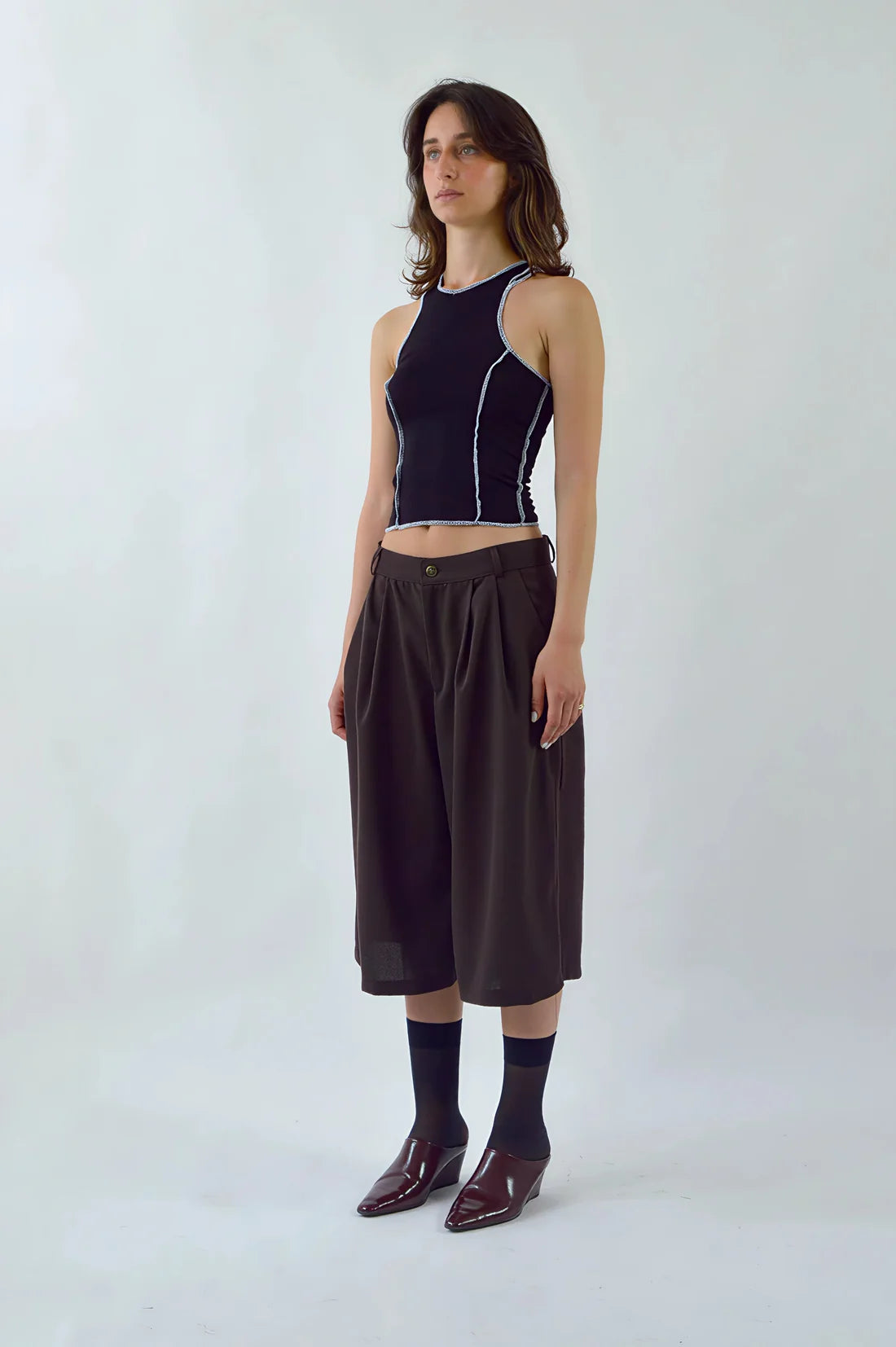 Le Bermuda Tralala est la pièce idéale pour les journées chaudes tout en conservant une allure élégante. Avec ses plis plats et sa ceinture droite, il se porte aussi bien au bureau qu’en soirée. Associez-le à une blouse légère ou un t-shirt pour une silhouette équilibrée et raffinée. La laine douce et la coupe moderne font de ce bermuda un must-have pour cet été.
